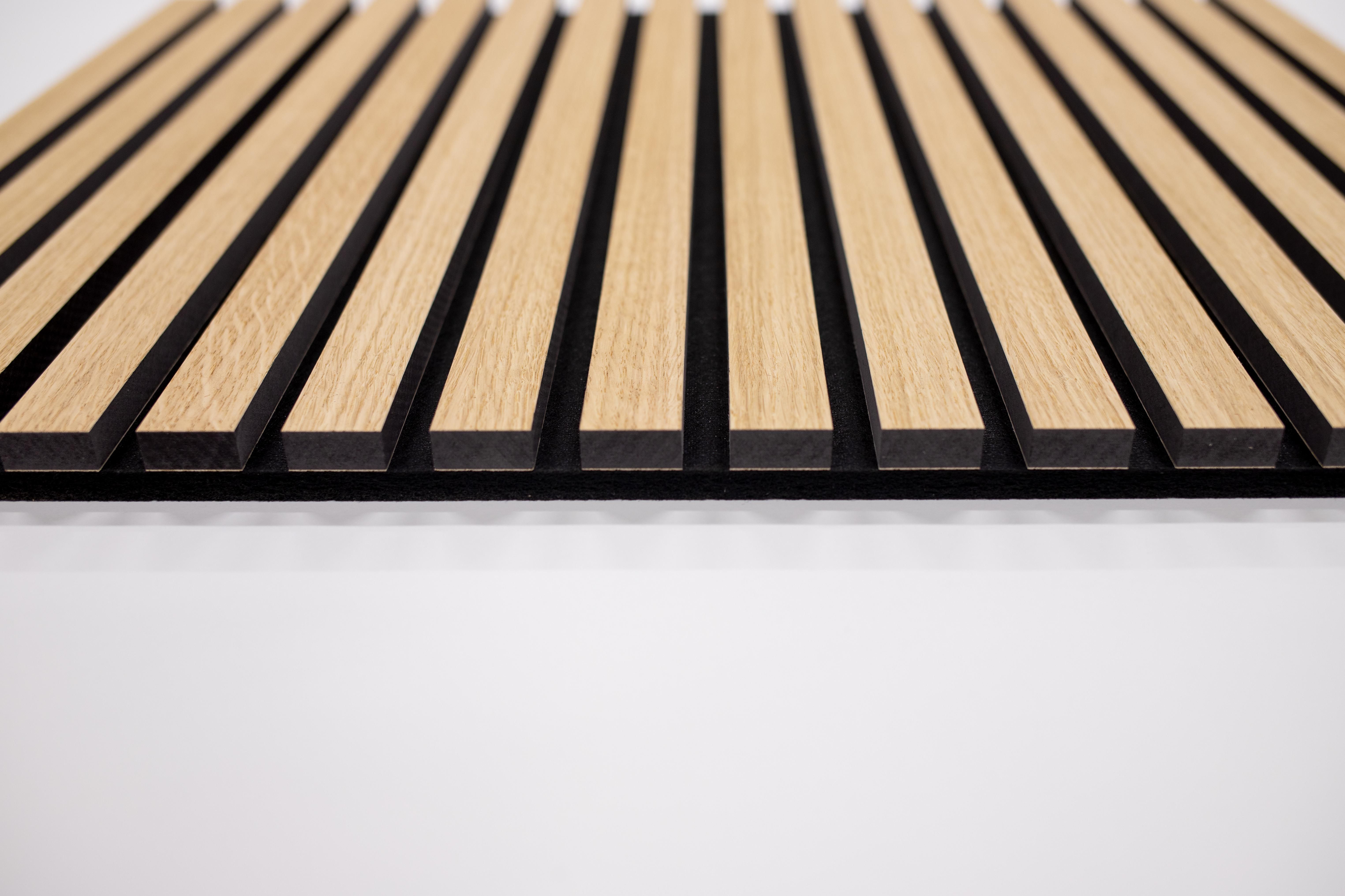 Die akustische Wirkung der Lamellenwand sorgt mit ihrem modernen